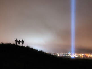 The Illumination of the IMAGINE PEACE TOWER at Viðey Island